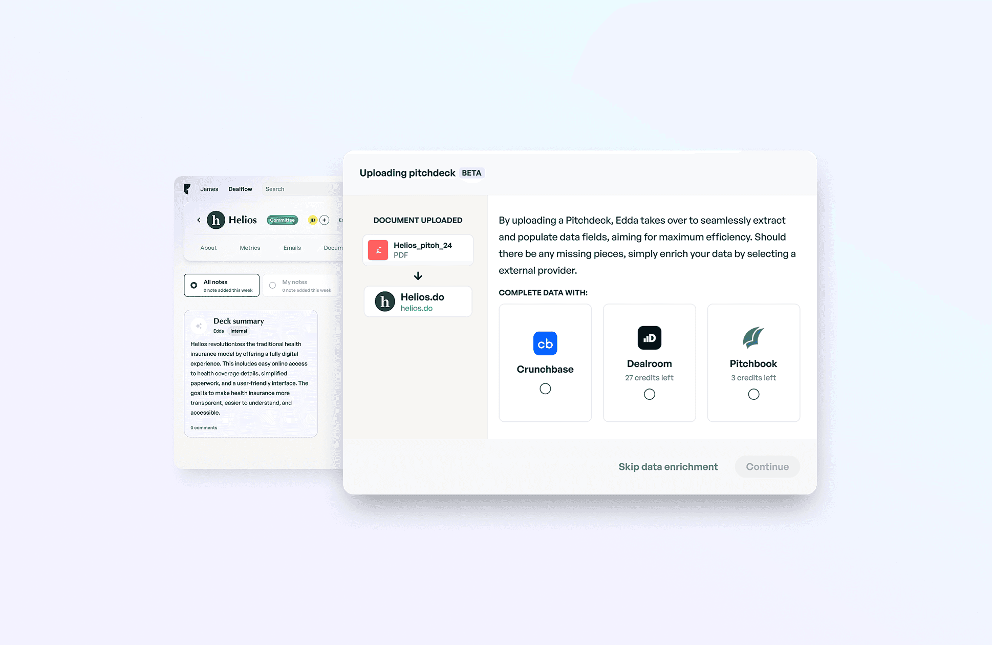 I designed an AI-assisted generation system that transforms structured deal data into coherent narratives. Users can instantly generate a complete deal memo, one-pager, or executive summary by simply selecting the desired format.
