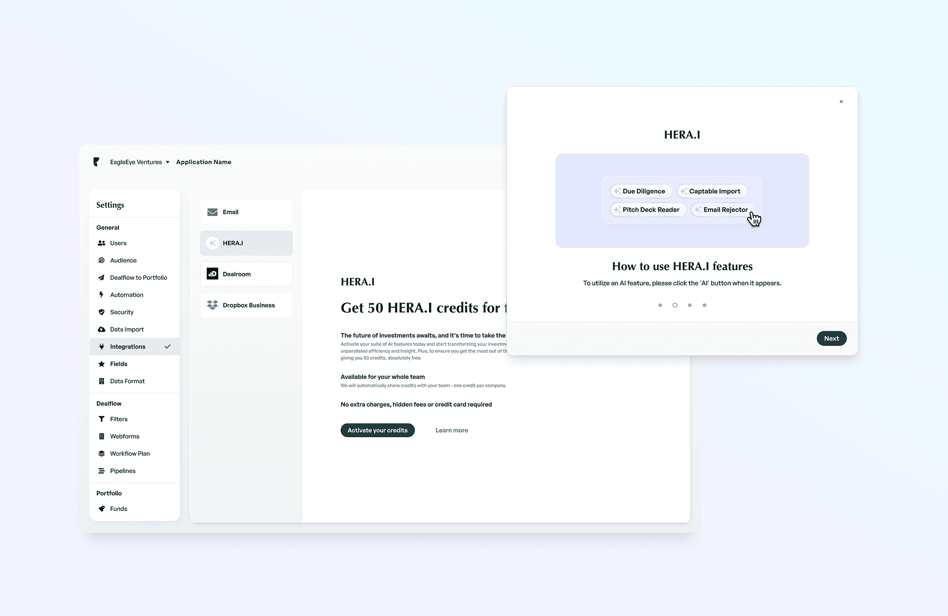 For complex financial documents, I developed an intelligent extraction system that automatically identifies and structures key information: financial metrics, deal terms, team bios, use of funds plans. Users simply drop a pitch deck or financial report, and AI automatically populates relevant deal fields.